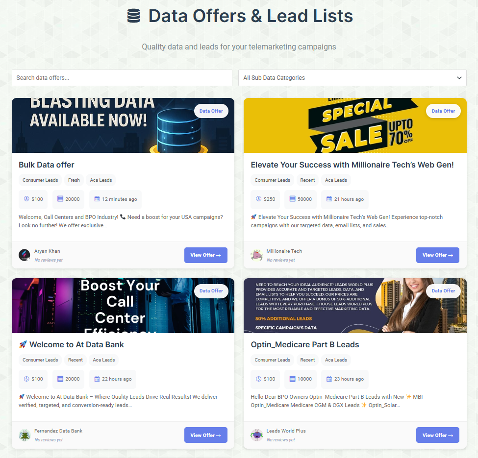 A trusted community built for call centers, campaign buyers, and data vendors.