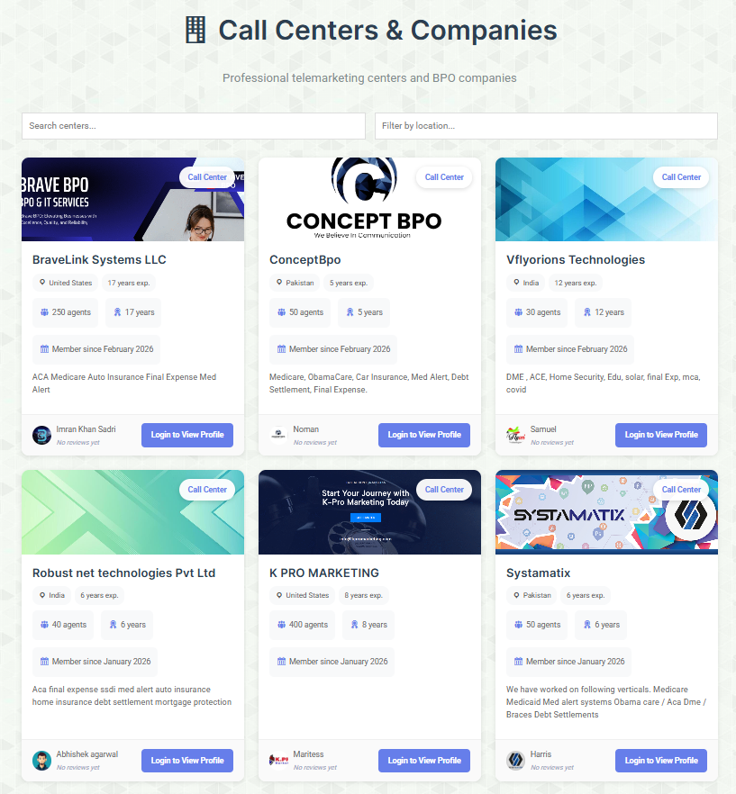 Join a fast-growing network where BPO professionals connect, share opportunities, verify partners, and protect each other from scams. Whether you’re running a call center, selling data, buying campaigns, or working independently—our platform helps you grow safely, transparently, and with confidence.